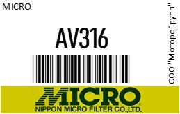 | 110426 | MICRO | AV316 | MICRO AV316 Фильтр воздушный /NWA316 A873 //РАСПРОДАЖА// () ST10323 | 4 | 700 | Только для отправки по России. |  |