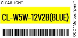 | 118210 | CLEARLIGHT | CL-W5W-12V2B(blue) | CLEARLIGHT CL-W5W-12V2B(blue) / CLW5W12V2B(blue) Лампа 12V W5W T10 W2.1x9.5d блистер (2шт.) | 28 | 85 | Под заказ за ~5 дней. ЦЕНА ДАННОЙ ПОЗИЦИИ УКАЗАНА БЕЗ УЧЕТА ДОСТАВКИ ВО ВЛАДИВОСТОК! |  |