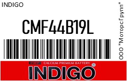 | 118244 | INDIGO | CMF44B19L | INDIGO CMF44B19L Аккумулятор CMF 44B19L (Юж.Корея) 44Ач, 350А, 187х127х199/219мм | 3 | 7050 | Только для отправки по России. |  |
