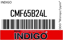 | 118247 | INDIGO | CMF65B24L | INDIGO CMF65B24L Аккумулятор CMF 65B24L (Юж.Корея) 50Ач, 470А, 236х128х200/220мм | 3 | 8400 | Только для отправки по России. |  |