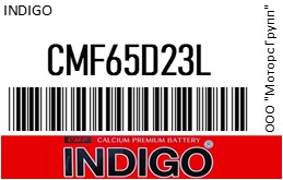 | 118248 | INDIGO | CMF65D23L | INDIGO CMF65D23L Аккумулятор CMF 65D23L (Юж.Корея) 60Ач, 450А, 230х172х200/220мм | 3 | 9900 | Только для отправки по России. |  |