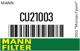 | 118894 | MANN | CU21003 | MANN CU21003 Фильтр салонный | 1 | 1150 | Под заказ за ~5 дней. |  |