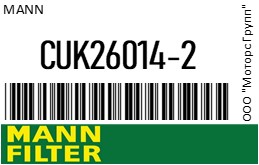 | 118915 | MANN | CUK26009 | MANN CUK26009 Фильтр салона [угольный] | 18 | 1450 | Только для отправки по России. |  |