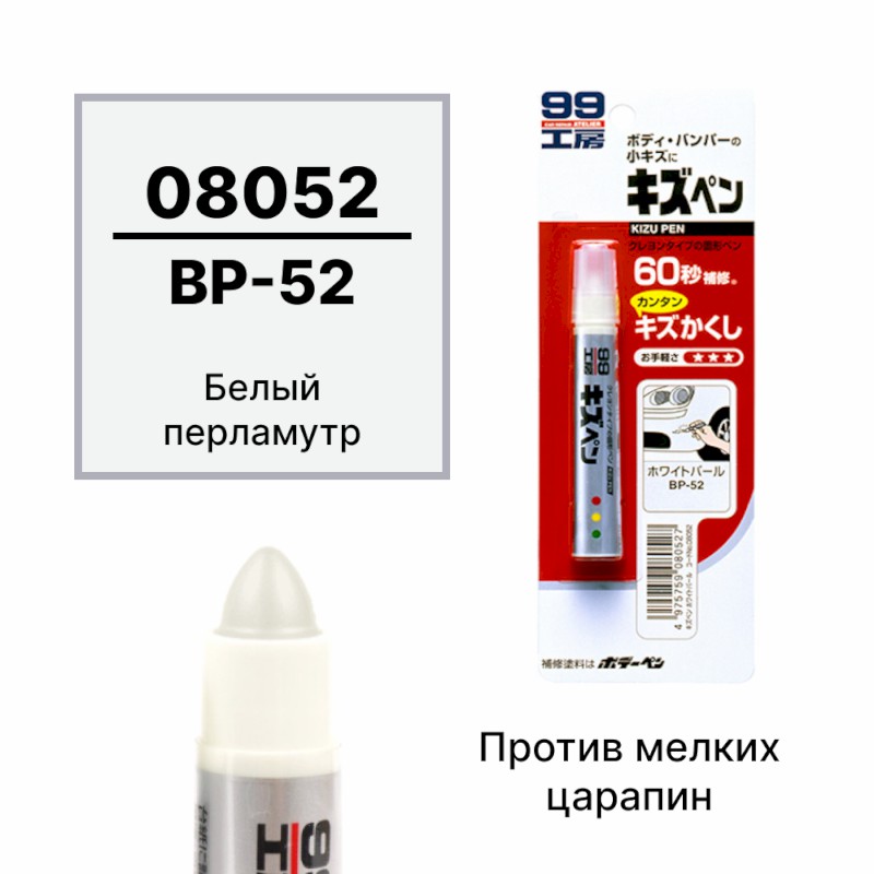 | 124352 | SOFT99 | 08052 | SOFT99 08052 Краска-карандаш для заделки царапин KIZU PEN белый перламутр, карандаш, 20 гр | 50 | 350 | Только для отправки по России. |  |