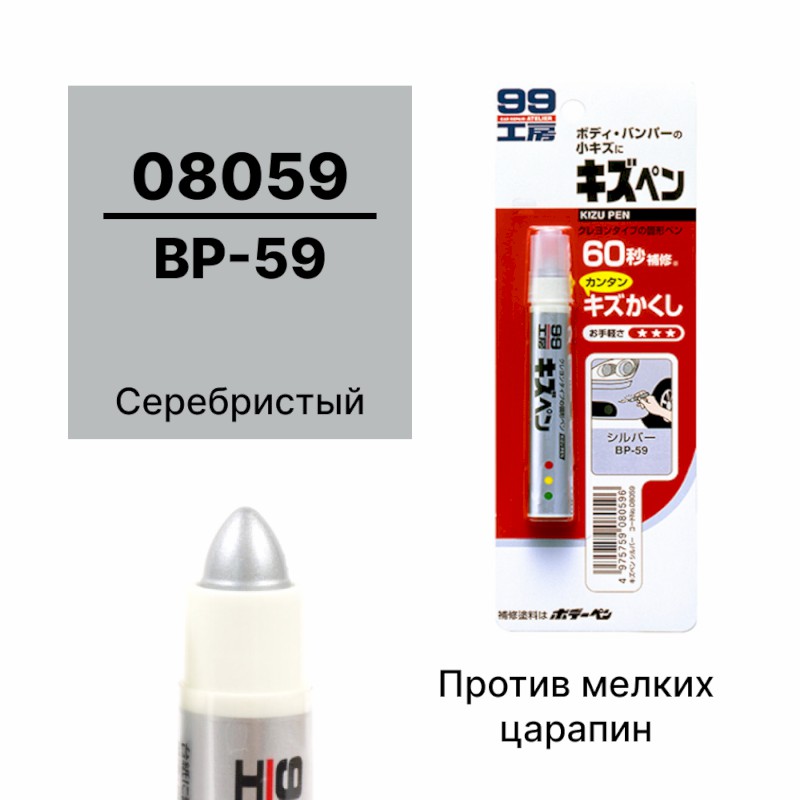 | 124354 | SOFT99 | 08059 | SOFT99 08059 Краска-карандаш для заделки царапин KIZU PEN серебристый, карандаш, 20 гр | 50 | 350 | Только для отправки по России. |  |
