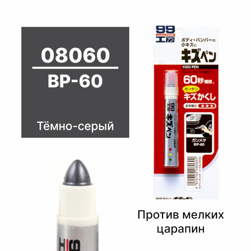 | 124355 | SOFT99 | 08060 | SOFT99 08060 Краска-карандаш для заделки царапин KIZU PEN серый, карандаш, 20 гр | 50 | 350 | Только для отправки по России. |  |