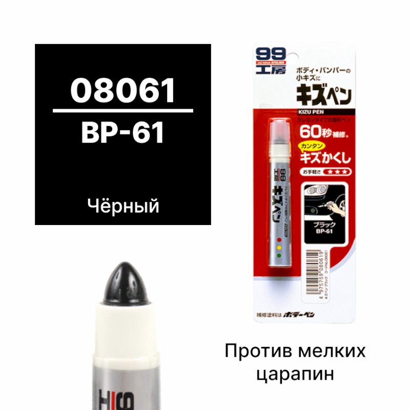 | 124356 | SOFT99 | 08061 | SOFT99 08061 Краска-карандаш для заделки царапин KIZU PEN черный, карандаш, 20 гр | 50 | 350 | Только для отправки по России. |  |