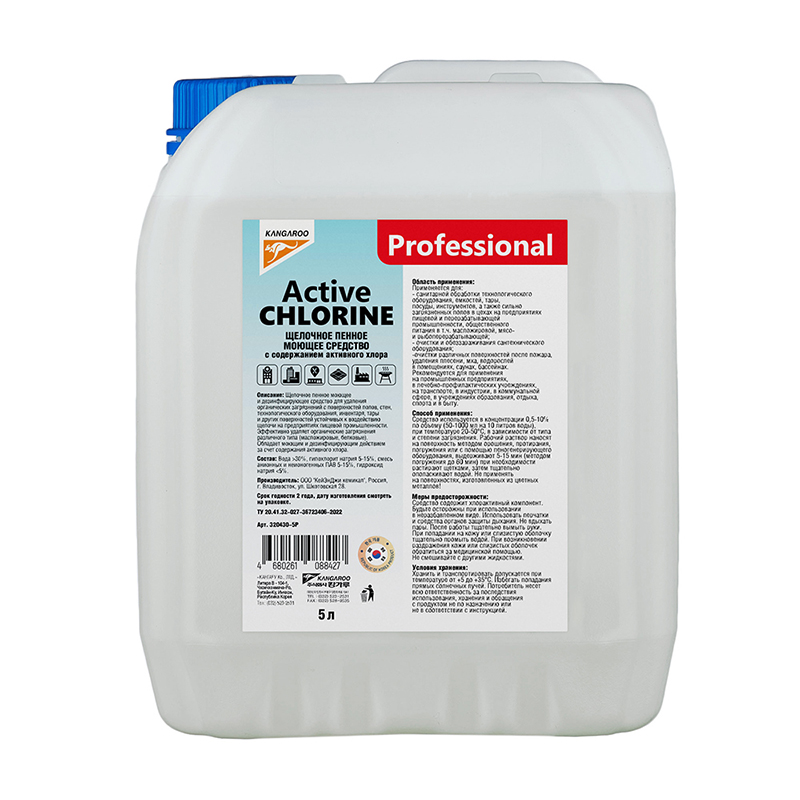 | 131361 | KANGAROO | 320430-5P | KANGAROO 320430-5P / 3204305P Professional Active chlorine Щелочное пенное моющее средство с содержанием активного хлора, 5л | 50 | 1250 | Только для отправки по России. |  |