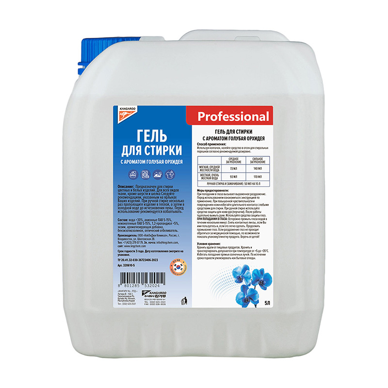 | 131372 | KANGAROO | 320610-5 | KANGAROO 320610-5 / 3206105 Гель для стирки Professional с ароматом голубая орхидея, 5 л | 1 | 1750 | Только для отправки по России. |  |