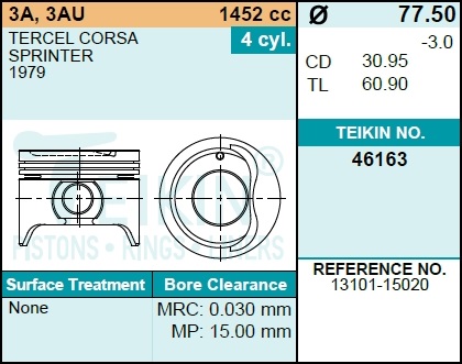 | 135456 | TEIKIN | 46163-STD | TEIKIN 46163-STD / 46163STD Поршень двигателя 46163 STD (4шт/упак) | 1 | 4550 | Только для отправки по России. |  |