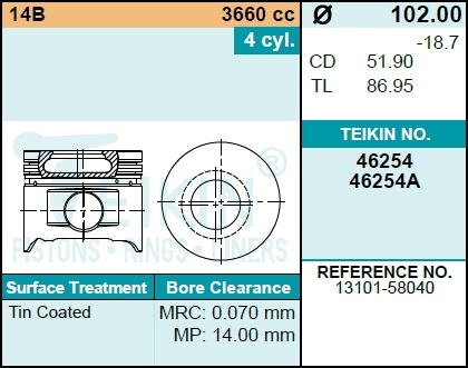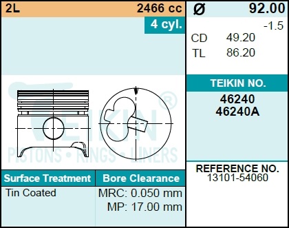 | 135468 | TEIKIN | 46240-STD | TEIKIN 46240-STD / 46240STD Поршень двигателя 46240 STD (4шт/упак) | 1 | 8050 | Только для отправки по России. |  |
