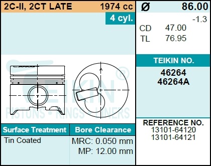 | 135526 | TEIKIN | 46356-050 | TEIKIN 46356-050 / 46356050 Поршень двигателя 46356 0.50 (4шт/упак) | 1 | 3650 | Только для отправки по России. |  |
