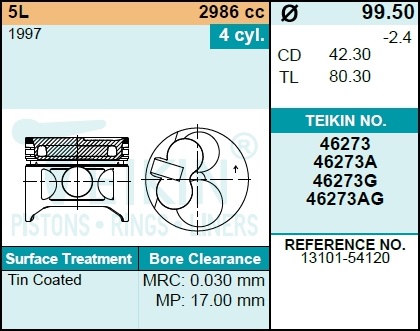 | 135487 | TEIKIN | 46273050 | TEIKIN 46273050 Поршни (к-т 4 шт) TOYOTA 5L | 2 | 10250 | Только для отправки по России. |  |