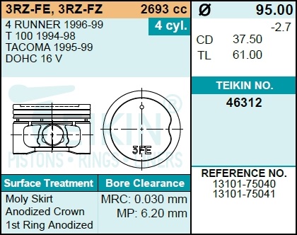 | 135501 | TEIKIN | 46312STD | TEIKIN 46312STD Поршень | 2 | 9300 | Только для отправки по России. |  |