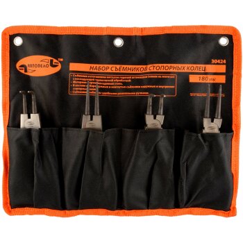 | 145622 | Автодело | AД-30424 | Автодело AД-30424 / AД30424 Съёмник стопор. колец, набор 4пр., L-180, сумка (12/24) | 25 | 1450 | Только для отправки по России. |  |