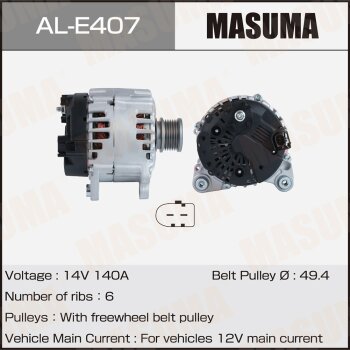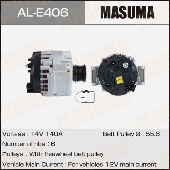 | 147161 | Masuma | AL-E406 | Masuma AL-E406 / ALE406 Генератор , AUDI / CJSA. CJSB, CJXC; DNUE (14V/140A) | 10 | 20400 | Только для отправки по России. |  |