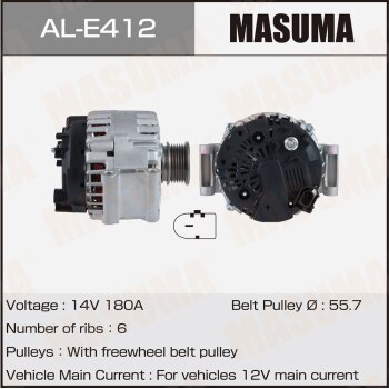 | 147167 | Masuma | AL-E412 | Masuma AL-E412 / ALE412 Генератор , AUDI / CJXG, DJHA, DNUE, DKZA (14V/180A) | 5 | 26900 | Только для отправки по России. |  |