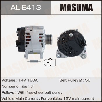 | 147168 | Masuma | AL-E413 | Masuma AL-E413 / ALE413 Генератор , VOLKSWAGEN / AZZ, BAA, BKJ, BMV, BMX, BRJ (14V/180A) | 10 | 26900 | Только для отправки по России. |  |