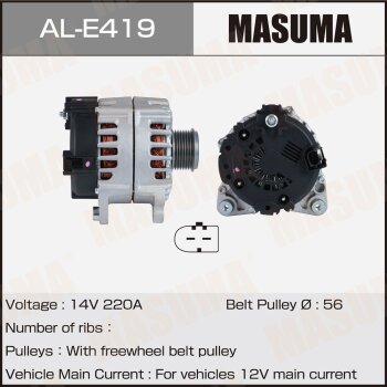 | 147174 | Masuma | AL-E419 | Masuma AL-E419 / ALE419 Генератор , VOLKSWAGEN / BHK (14V/220A) | 10 | 30350 | Только для отправки по России. |  |