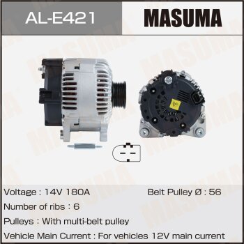 | 147175 | Masuma | AL-E420 | Masuma AL-E420 / ALE420 Генератор , VOLKSWAGEN / BHK, BHL (14V/180A) | 7 | 24150 | Только для отправки по России. |  |