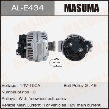 | 147188 | Masuma | AL-E434 | Masuma AL-E434 / ALE434 Генератор , BMW / N43B20, N52B30, N46B20 (14V/150A) | 10 | 21700 | Только для отправки по России. |  |