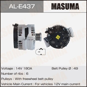 | 147191 | Masuma | AL-E437 | Masuma AL-E437 / ALE437 Генератор , BMW / N52B25 (14V/180A) | 5 | 25700 | Только для отправки по России. |  |