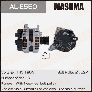 | 147204 | Masuma | AL-E550 | Masuma AL-E550 / ALE550 Генератор , MERCEDES-BENZ / M 274, M 264, M 270 (14V/190A) | 10 | 28200 | Только для отправки по России. |  |