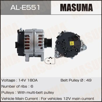 | 147205 | Masuma | AL-E551 | Masuma AL-E551 / ALE551 Генератор , MERCEDES-BENZ / M 278 (14V/180A) | 10 | 26450 | Только для отправки по России. |  |