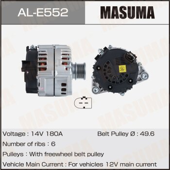 | 147206 | Masuma | AL-E552 | Masuma AL-E552 / ALE552 Генератор , MERCEDES-BENZ / OM 651, M 276 (14V/180A) | 10 | 28200 | Только для отправки по России. |  |