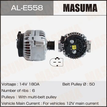 | 147217 | Masuma | AL-E563 | Masuma AL-E563 / ALE563 Генератор , MERCEDES-BENZ / OM651, M 276 (14V/180A) | 6 | 26450 | Только для отправки по России. |  |