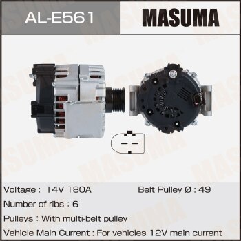 | 147215 | Masuma | AL-E561 | Masuma AL-E561 / ALE561 Генератор , MERCEDES-BENZ / M 272, M 156, M 273 (14V/180A) | 10 | 26450 | Только для отправки по России. |  |