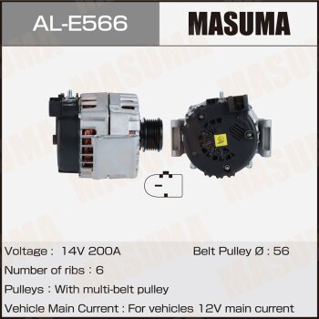 | 147220 | Masuma | AL-E566 | Masuma AL-E566 / ALE566 Генератор , MERCEDES-BENZ / M276.821 (14V/200A) | 10 | 27300 | Только для отправки по России. |  |