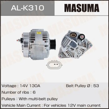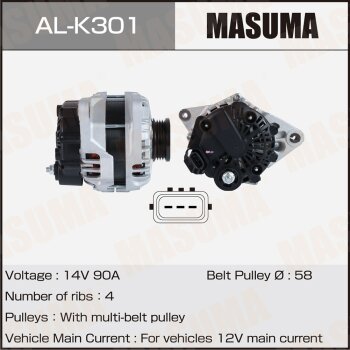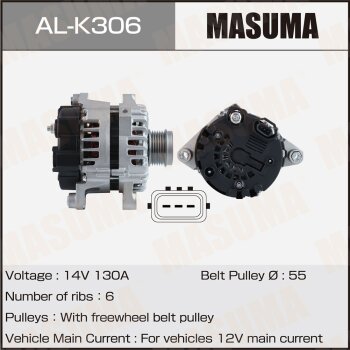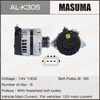 | 147230 | Masuma | AL-K305 | Masuma AL-K305 / ALK305 Генератор , KIA / G4FJ (14V/130A) | 10 | 20800 | Только для отправки по России. |  |