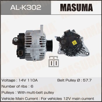 | 147227 | Masuma | AL-K302 | Masuma AL-K302 / ALK302 Генератор , HYUNDAI / G6BA, G6BV (14V/110A) | 5 | 15100 | Только для отправки по России. |  |