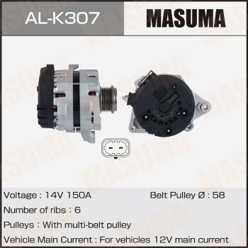 | 147232 | Masuma | AL-K307 | Masuma AL-K307 / ALK307 Генератор , KIA / G4ND, G4KD, G4NC (14V/150A) | 3 | 21250 | Только для отправки по России. |  |