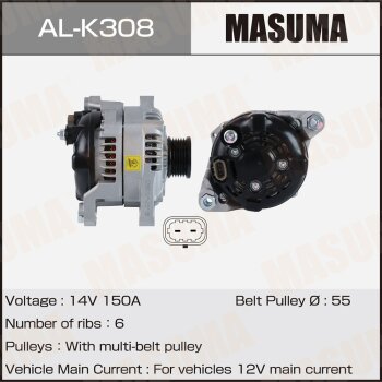 | 147233 | Masuma | AL-K308 | Masuma AL-K308 / ALK308 Генератор , KIA / G4KH, G4KJ (14V/150A) | 1 | 18250 | Только для отправки по России. |  |