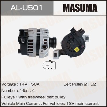 | 147238 | Masuma | AL-U501 | Masuma AL-U501 / ALU501 Генератор , FORD / XQDA (14V/150A) | 1 | 21950 | Только для отправки по России. |  |