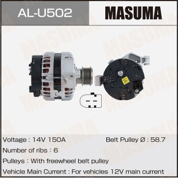 | 147239 | Masuma | AL-U502 | Masuma AL-U502 / ALU502 Генератор , FORD / TNWA, TPBA, TNBA (14V/150A) | 8 | 24750 | Только для отправки по России. |  |