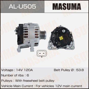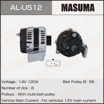 | 147249 | Masuma | AL-U512 | Masuma AL-U512 / ALU512 Генератор , OPEL / Z32SE (14V/120A) | 8 | 17350 | Только для отправки по России. |  |