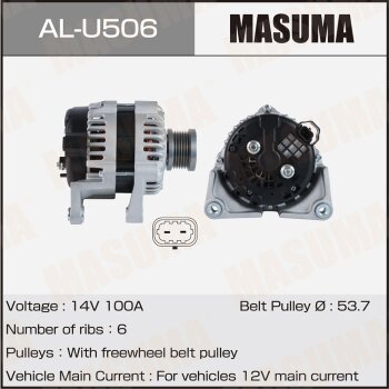 | 147243 | Masuma | AL-U506 | Masuma AL-U506 / ALU506 Генератор , GM / A18XER, A16LET, A 16 XER (14V/100A) | 3 | 17350 | Только для отправки по России. |  |