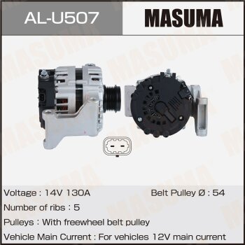 | 147244 | Masuma | AL-U507 | Masuma AL-U507 / ALU507 Генератор , OPEL / B14XFT (14V/130A) | 10 | 20200 | Только для отправки по России. |  |