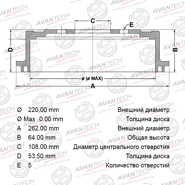 | 153030 | AVANTECH | BR0552S | AVANTECH BR0552S Диск тормозной передний | 50 | 3150 | Только для отправки по России. |  |