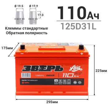 | 155760 | Зверь АКБ | CMF125D31L.ZVKA | Зверь АКБ CMF125D31L.ZVKA АКБ ЗВЕРЬ ASIA 6СТ-110VL /110-3-R 110 Ah L(обр) ССА 930А 306-175-225, необслуж. (1/72) | 50 | 12450 | Только для отправки по России. |  |