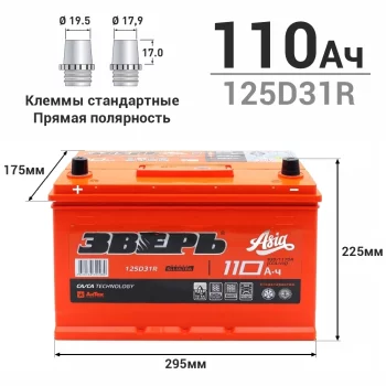 | 155761 | Зверь АКБ | CMF125D31R.ZVKA | Зверь АКБ CMF125D31R.ZVKA АКБ ЗВЕРЬ ASIA 6СТ-110VL /110-3-L 110 Ah R ССА 930А 306-175-225, необслуж. (1/72) | 100 | 12450 | Только для отправки по России. |  |