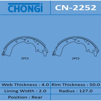 | 155777 | Chongi | CN-2252 | Chongi CN-2252 / CN2252 Колодки барабанные R-1022 (1/6) | 4 | 1550 | Только для отправки по России. |  |