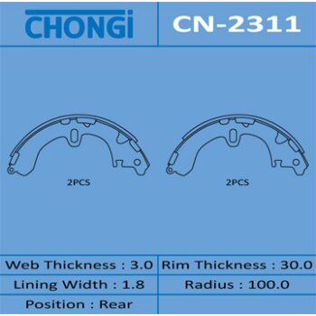 | 155780 | Chongi | CN-2311 | Chongi CN-2311 / CN2311 Колодки барабанные R-1030 (1/16) | 10 | 1050 | Только для отправки по России. |  |
