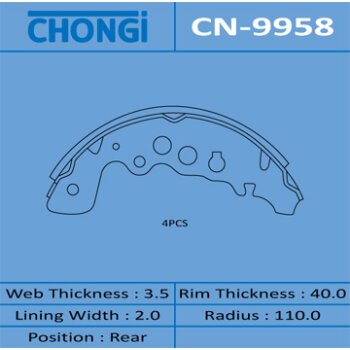 | 155791 | Chongi | CN-9958 | Chongi CN-9958 / CN9958 Колодки барабанные (1/16) | 8 | 1150 | Только для отправки по России. |  |