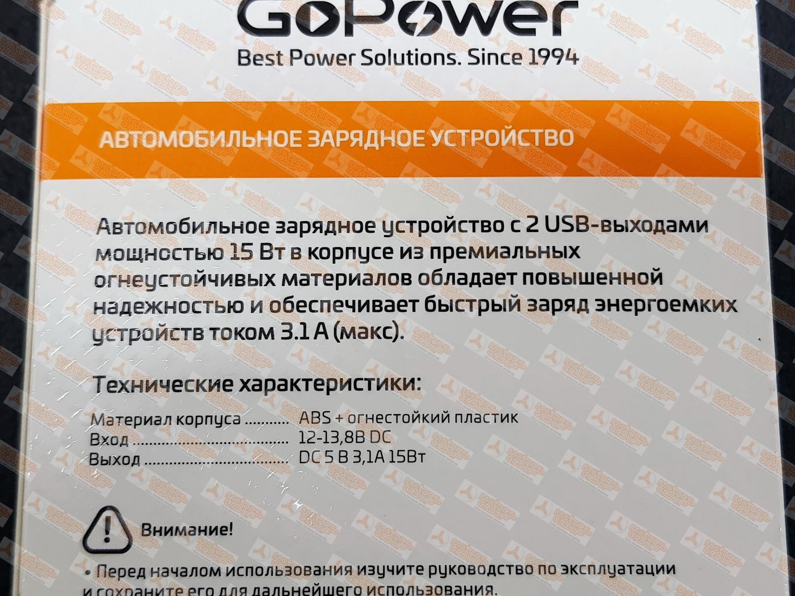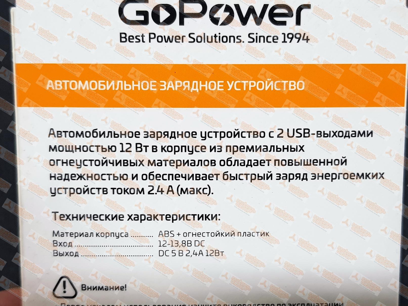 | 32478 | GOPOWER | GPC07-2U | GOPOWER GPC07-2U / GPC072U Зарядное устройство автомобильное в прикуриватель 12-24V USB*2 - 2.4A | 3 | 650 | В наличии. |  |