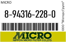 | 99318 | MICRO | 8-94316-228-0 | MICRO 8-94316-228-0 / 8943162280 Фильтр масляный C517/C1525 () ST20623 | 6 | 700 | Только для отправки по России. |  |