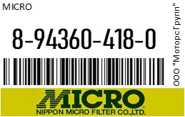 | 99367 | MICRO | 8-94360-418-0 | MICRO 8-94360-418-0 / 8943604180 ФильтрМасляный C508(C506+C513)/O5295S/ | 2 | 1600 | Только для отправки по России. |  |